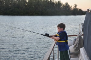 David and the boys took the dinghy to the pier and walked two blocks across Anna Maria Island to the beach on the Gulf of Mexico. On their trek back they picked up sandwiches and grouper bites to snack on during our crossing of Sarasota Bay. Not your traditional Thanksgiving lunch, but a great starter to a fine day of Florida weather.