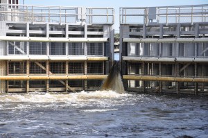 The locks in the Okeechobee Waterway let water in by cracking the front gates slightly.