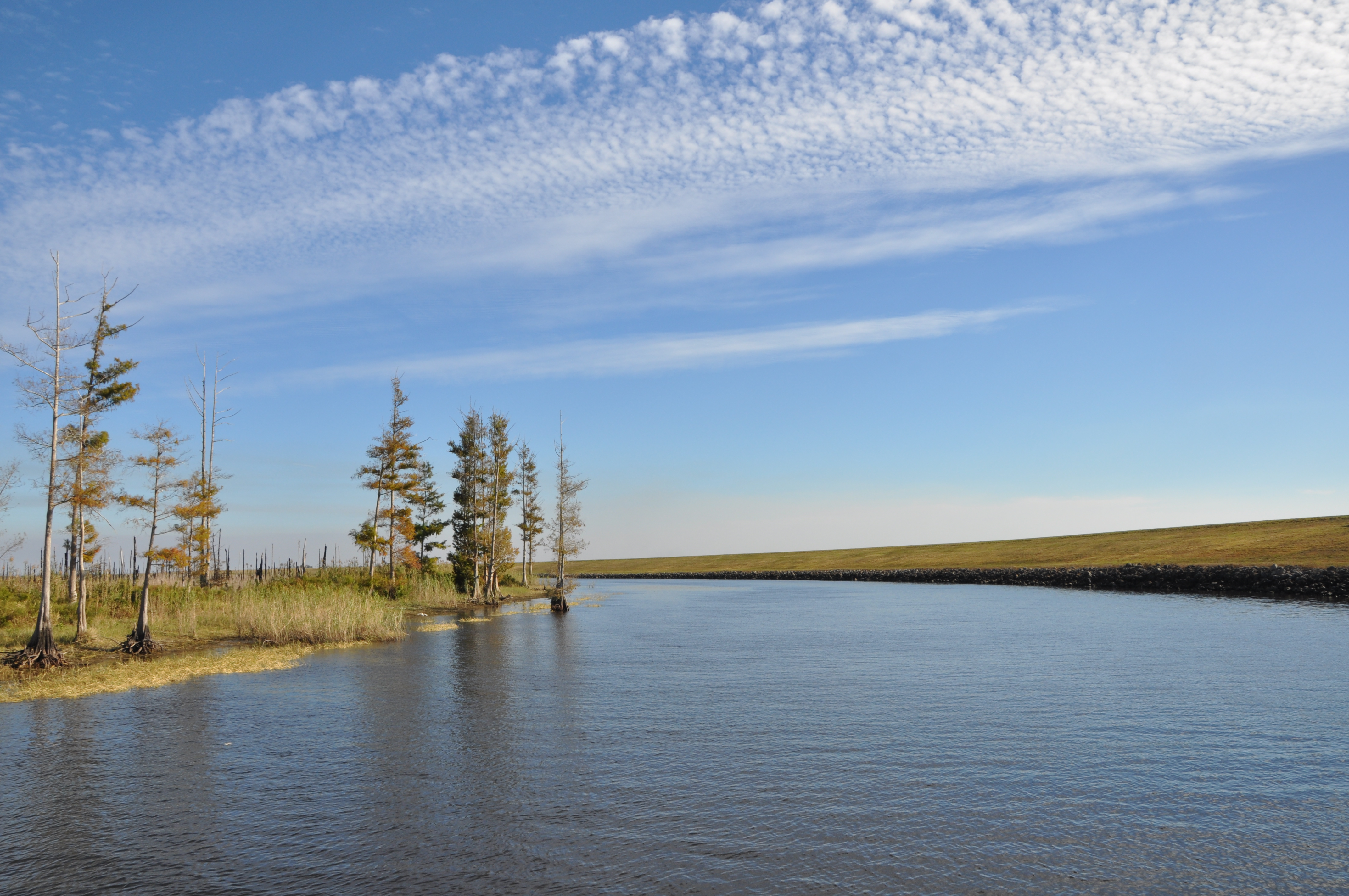 To starboard, the levee rims the canal. To port, the marshy wilderness reaches toward Lake Okeechobee.