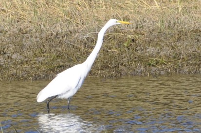 After Moore Haven we entered the wonderland that is Lake Okeechobee.  Yes, of course there are alligators, and many of them, lurking at the edge of the canal that leads to Clewiston.  To starboard, you can only see the well-mowed levee; to port is a marshy land filled with water birds and critters.  Our adrenalin ran high as we spotted and identified one species after another within the same area or perched on the same tree.  Bob said it best when he likened the numbers and types of birds to a diorama that one might see on display.