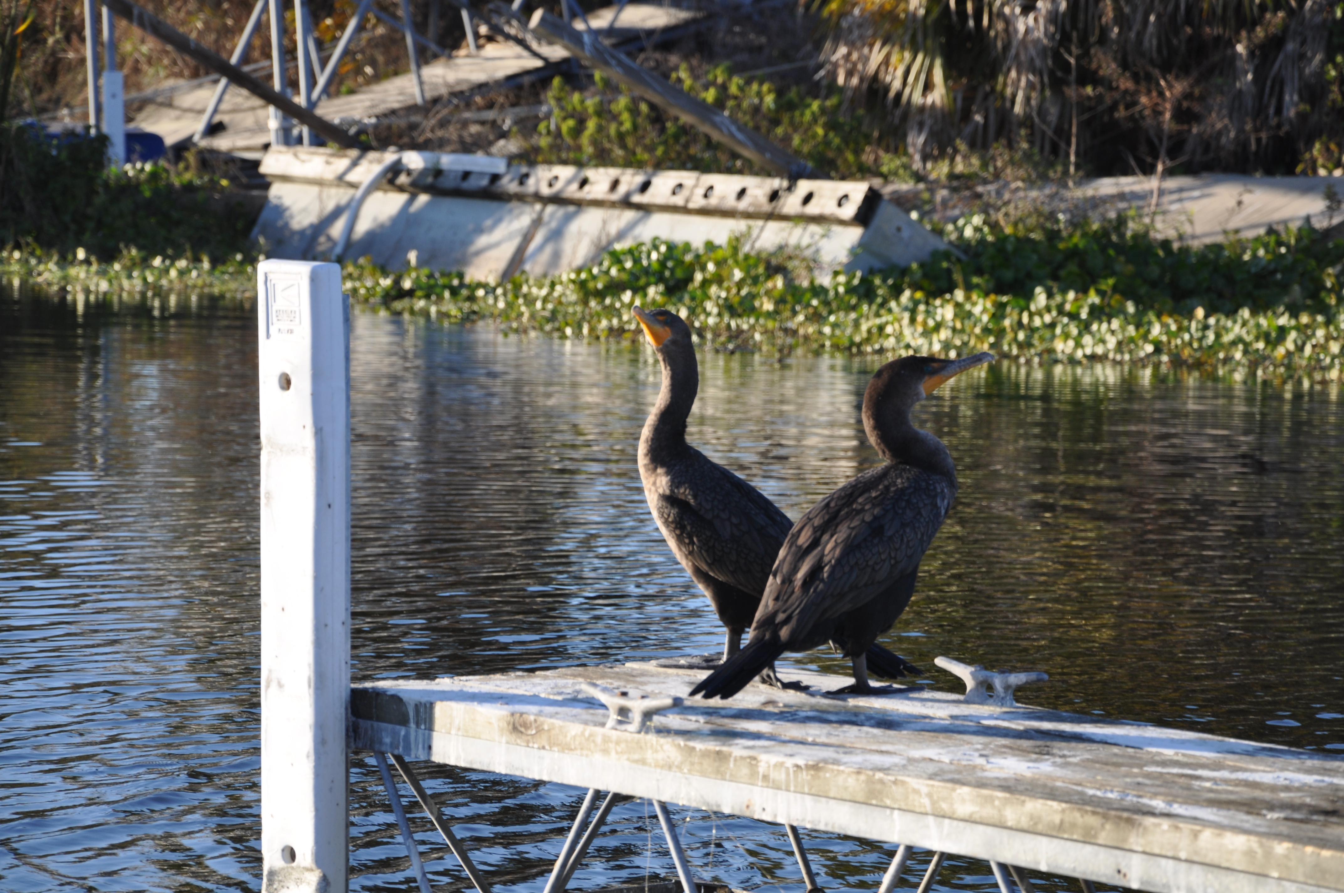 A pair of cormorants watch the sunset from the dock in Clewiston.