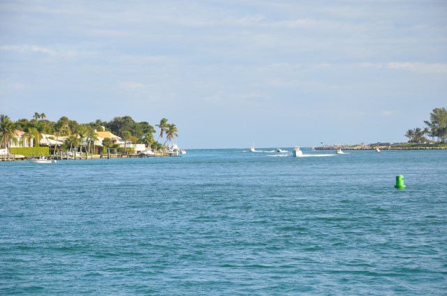 Just as the fog over Lake Okeechobee provided a stark contrast to the crisp, bright Florida days, our introduction to Florida’s east coast cast a distinct change from the quiet of the inland waterway.   Where the day before we met the occasional boat, avoiding collisions with other mariners was now our primary task.  There were big boats, little boats, sailboats and personal watercraft buzzing about, all creating wakes, all enjoying the weekend weather, and all at varying stages of sobriety.