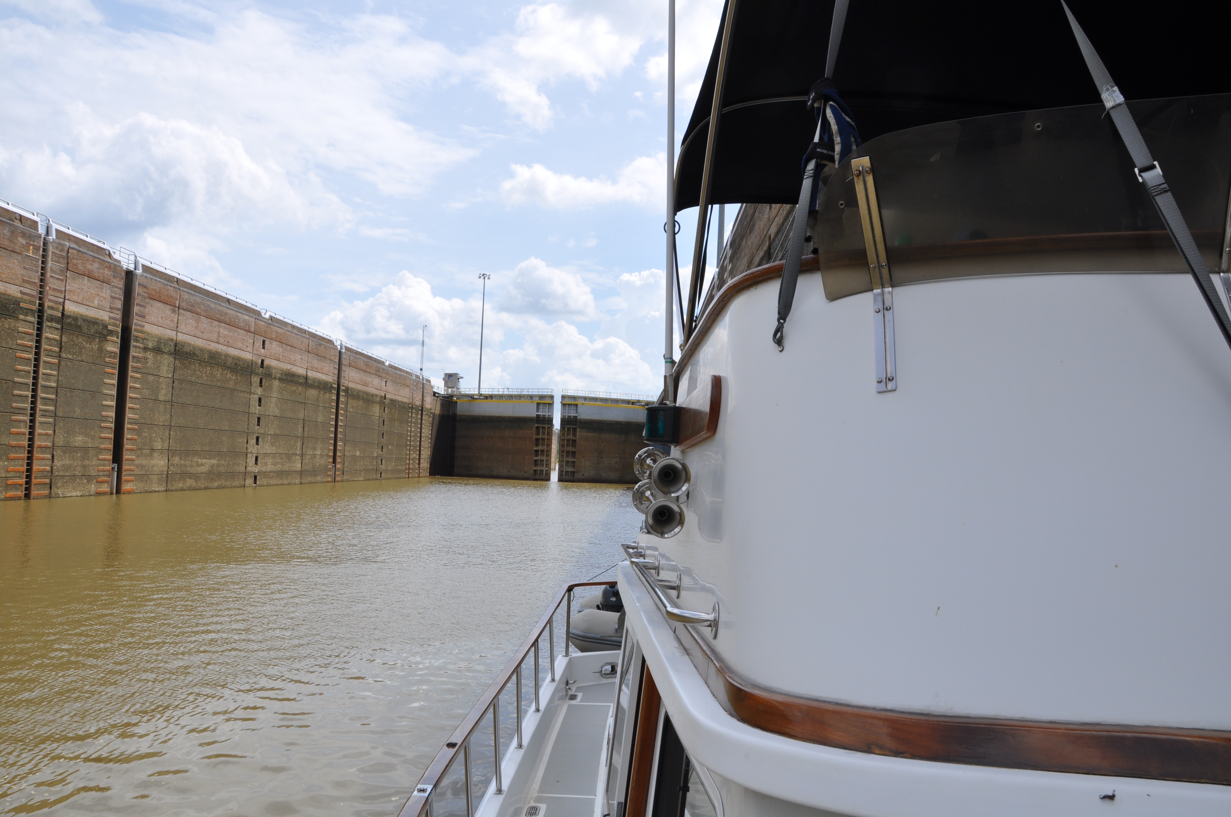 Tuesday took us through the first of twelve locks. The Coffeeville Lock and Dam would lift us over thirty feet out of tidal waters and into the fresh water of the Tombigbee River.