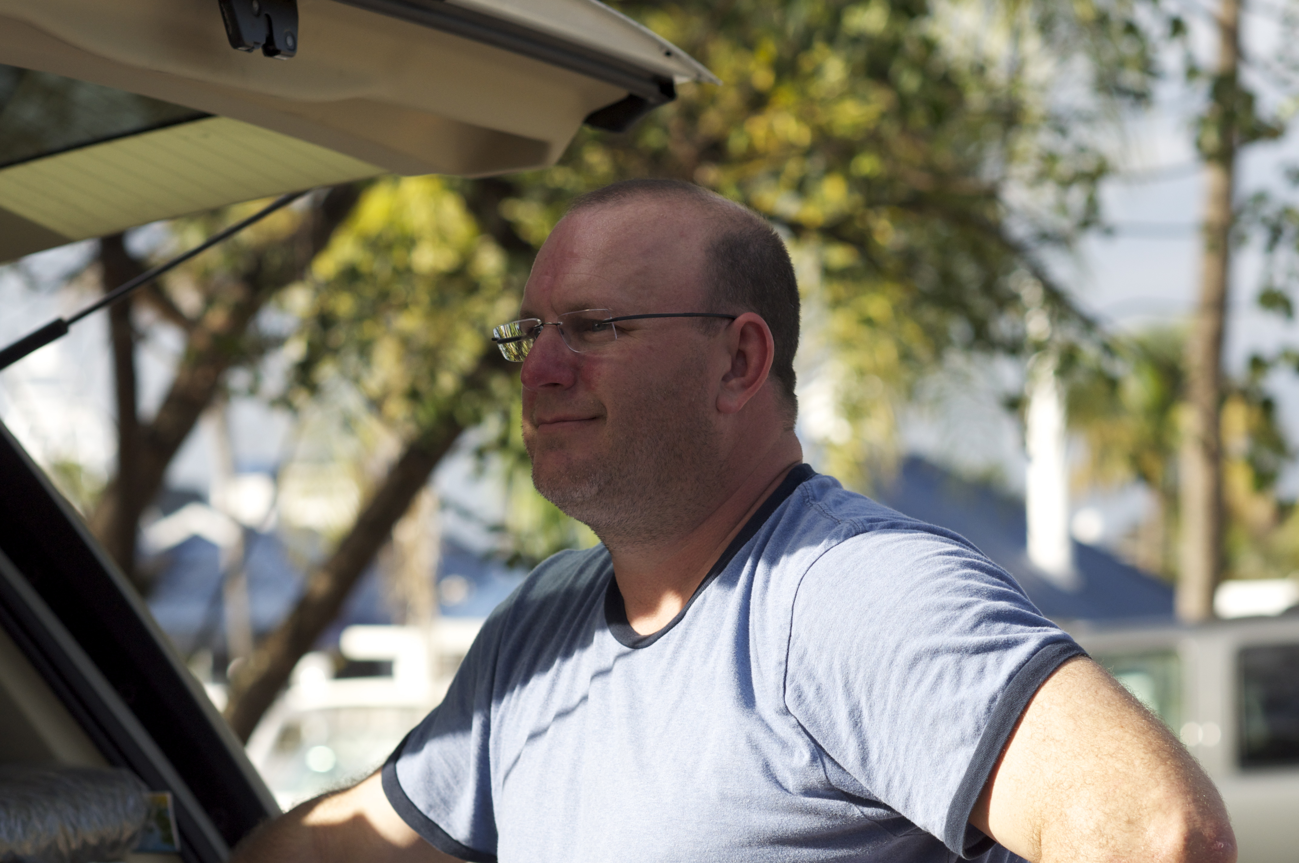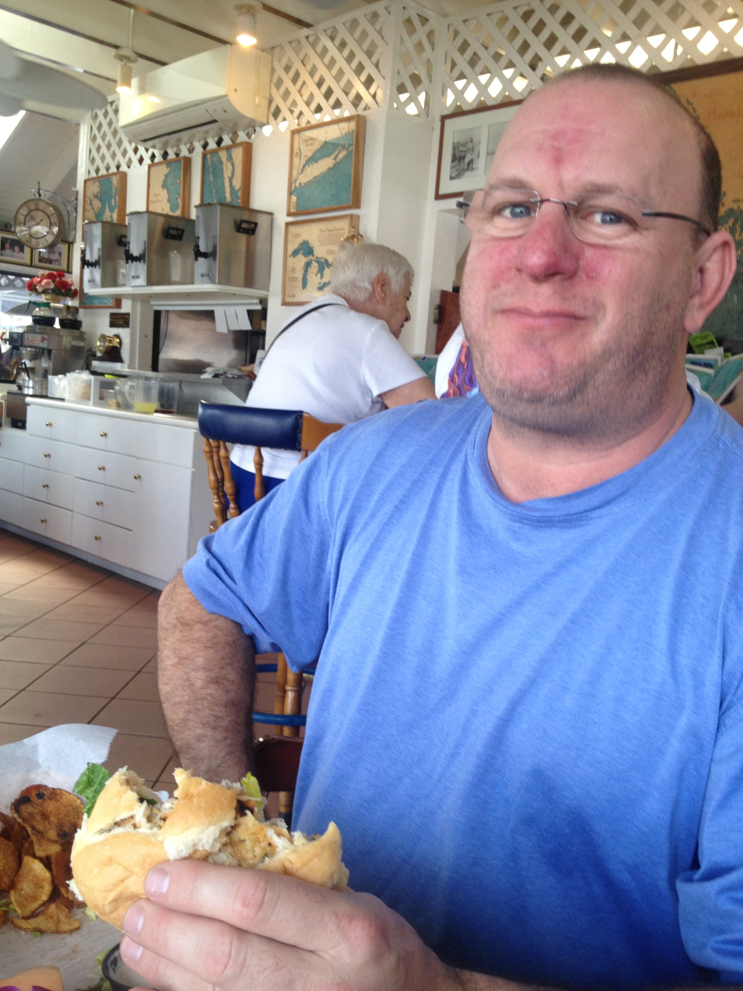 You can see by the happy grins above that Thursday brings us to the completion of this leg of our Loop Journey. After several sandwiches at Gramma Dot’s and on the flybridge amid white wine and dark beer, we pack up the car and give the Traveler a thorough cleaning.