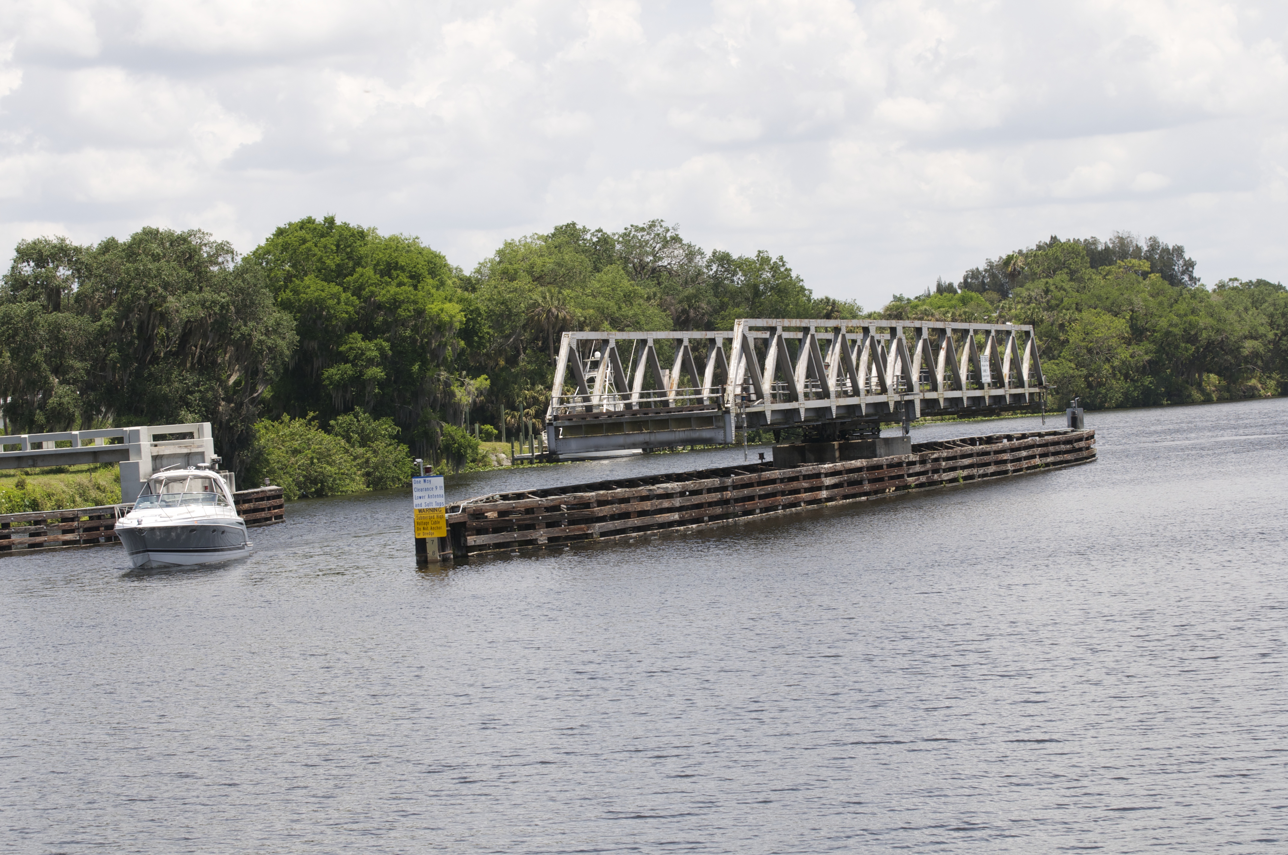 A series of locks control the water levels of the rivers and canals into Lake Okeechobee. Boats, and the occasional manatee are lifted from sea level up into the lake and lowered when they reach the other side. These shallow locks are maintained and operated by the Army Corps of Engineers.