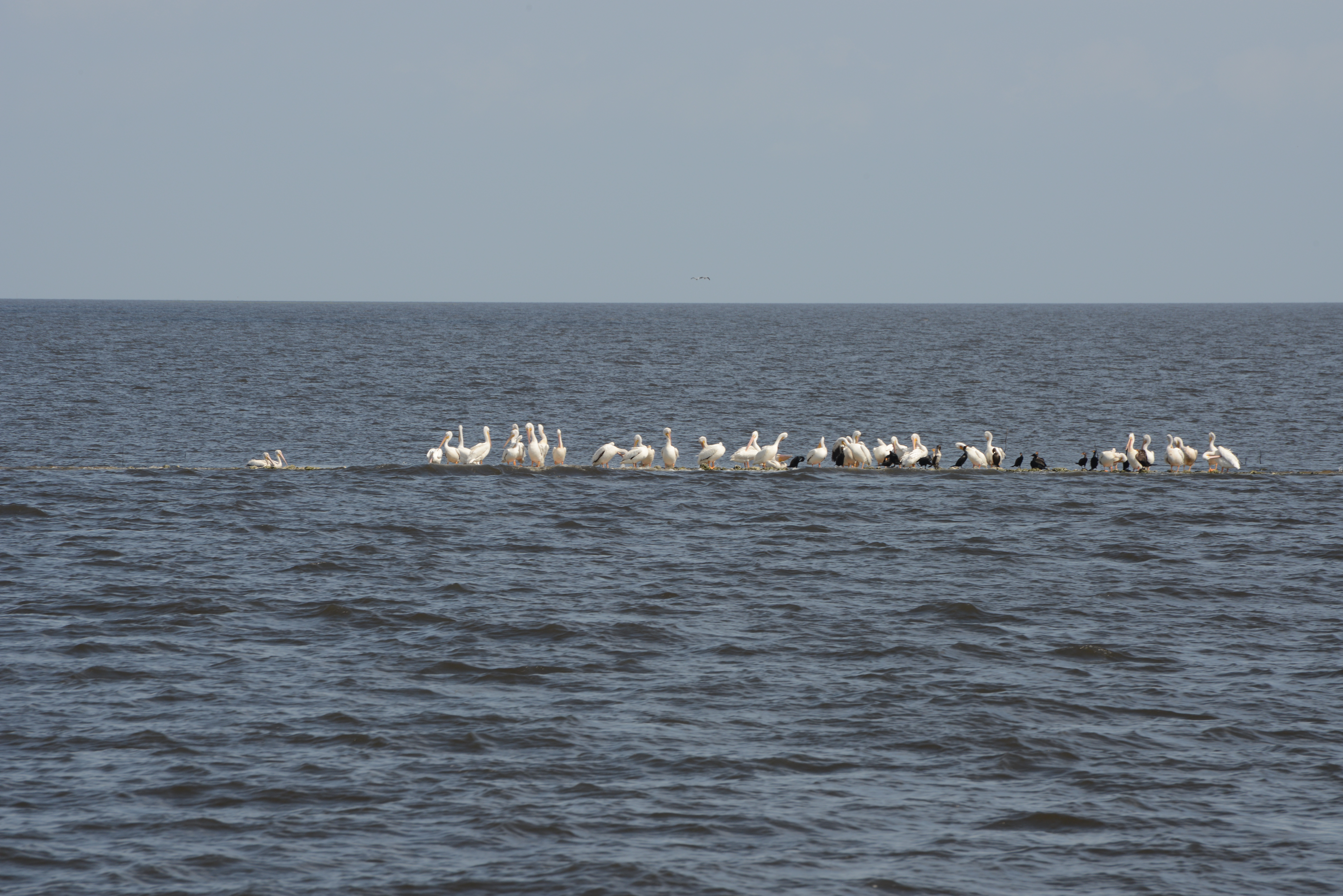 A dense fog engulfed the boat during our trip across the lake in December 2010. That fog was the first of several, which spurred our decision to purchase a radar detection system. This crossing saw no fog, and no harsh wind or waves; it was a delightful way to spend a morning, enjoying the breeze and breakfast on the flybridge while watching the antics of sea birds.
