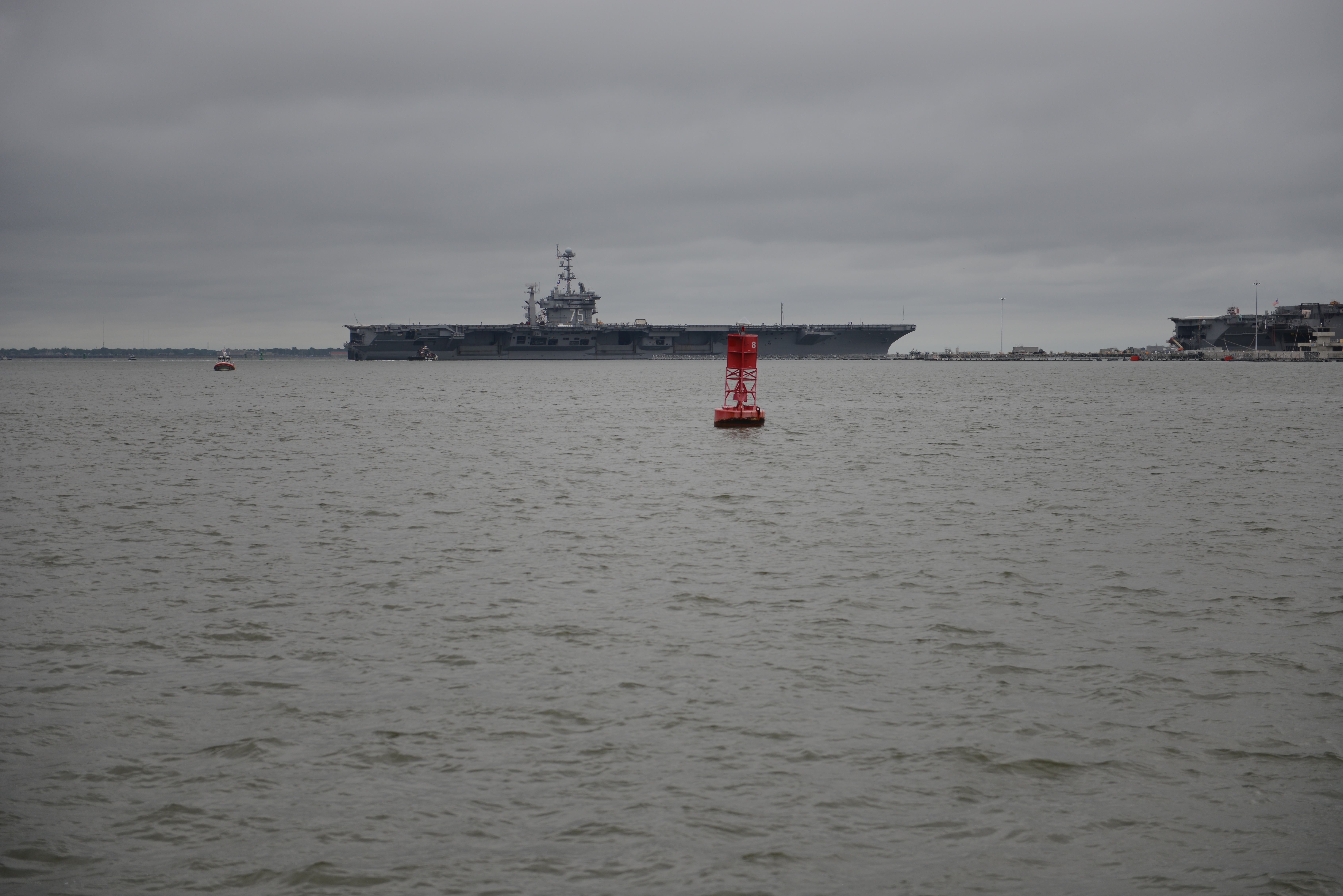 Entering Norfolk Harbor and leaving the narrow channels of the Atlantic Intracoastal Waterway in our wake.