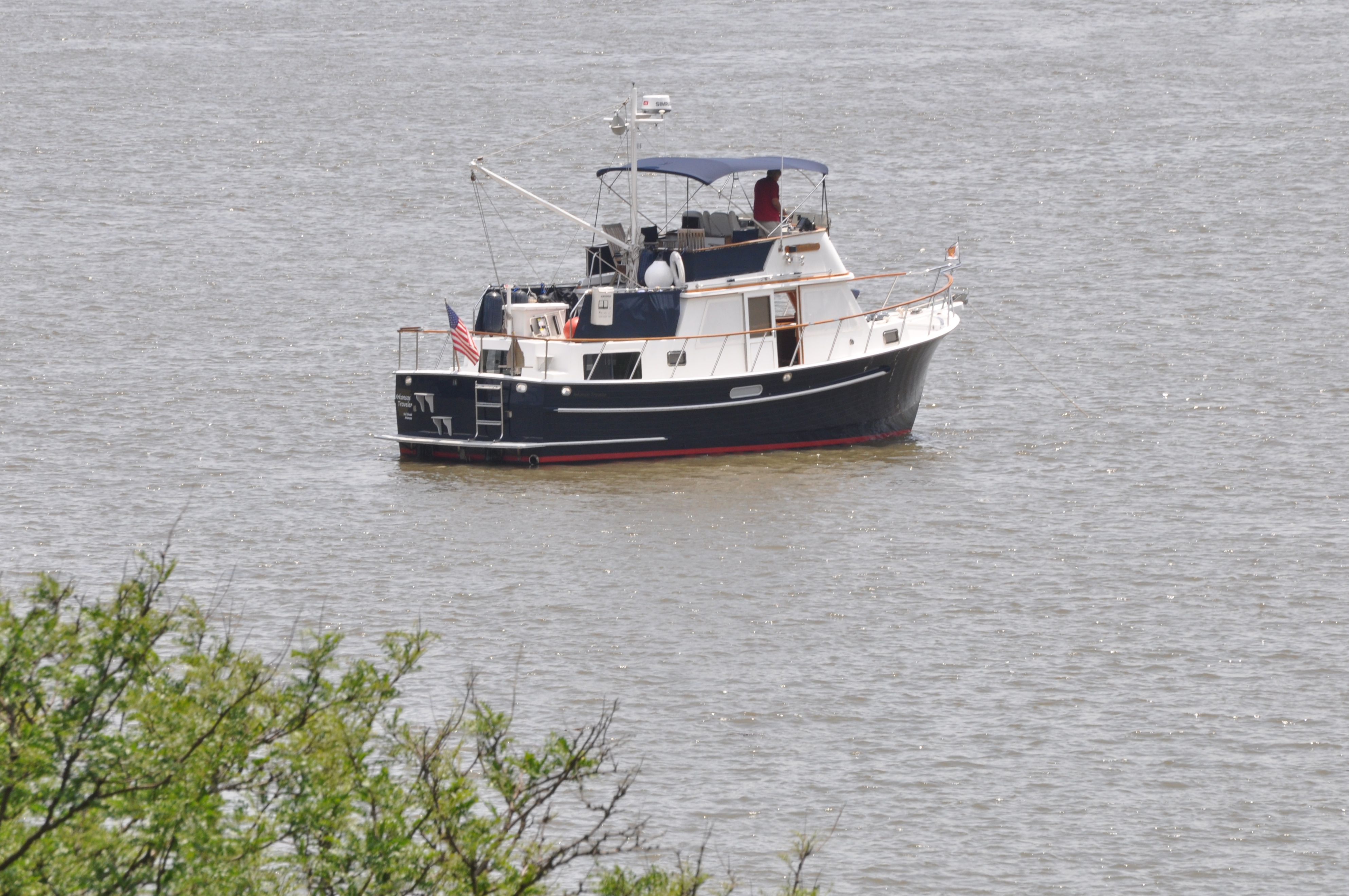 Dunderberg Mountain marks the southern end of the Highlands and is rumored by the Dutch to contain a goblin that conjures up summer storms upon passing sailors. We did see an odd flashing light coming from within the forest as passed. We stopped at Bear Mountain and anchored for lunch.
