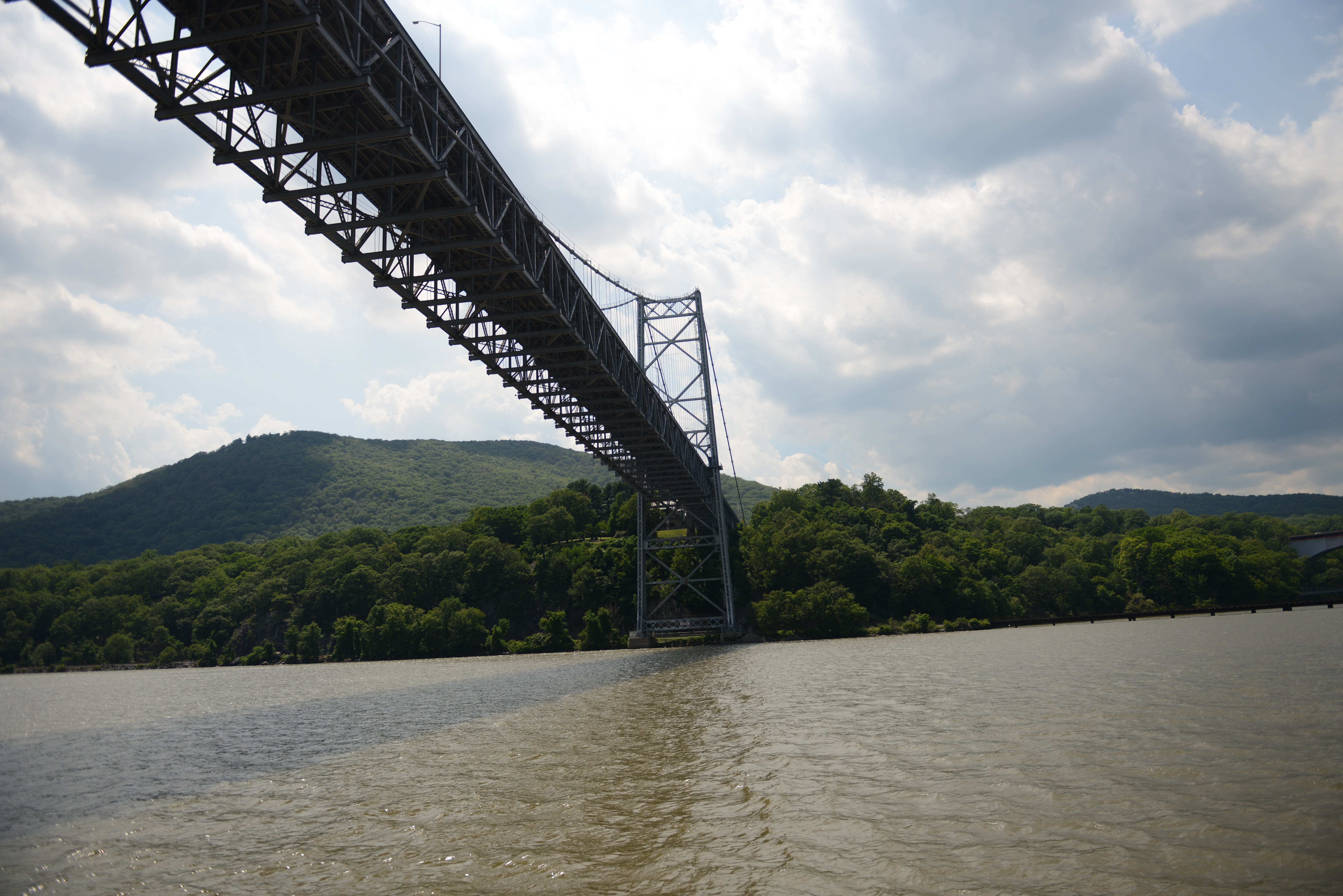 After lunch and a quick trip ashore in the dinghy to the state park, we continued north under the Bear Mountain Bridge. This suspension bridge, completed in 1924, was the world’s largest of its type at the time it was built.