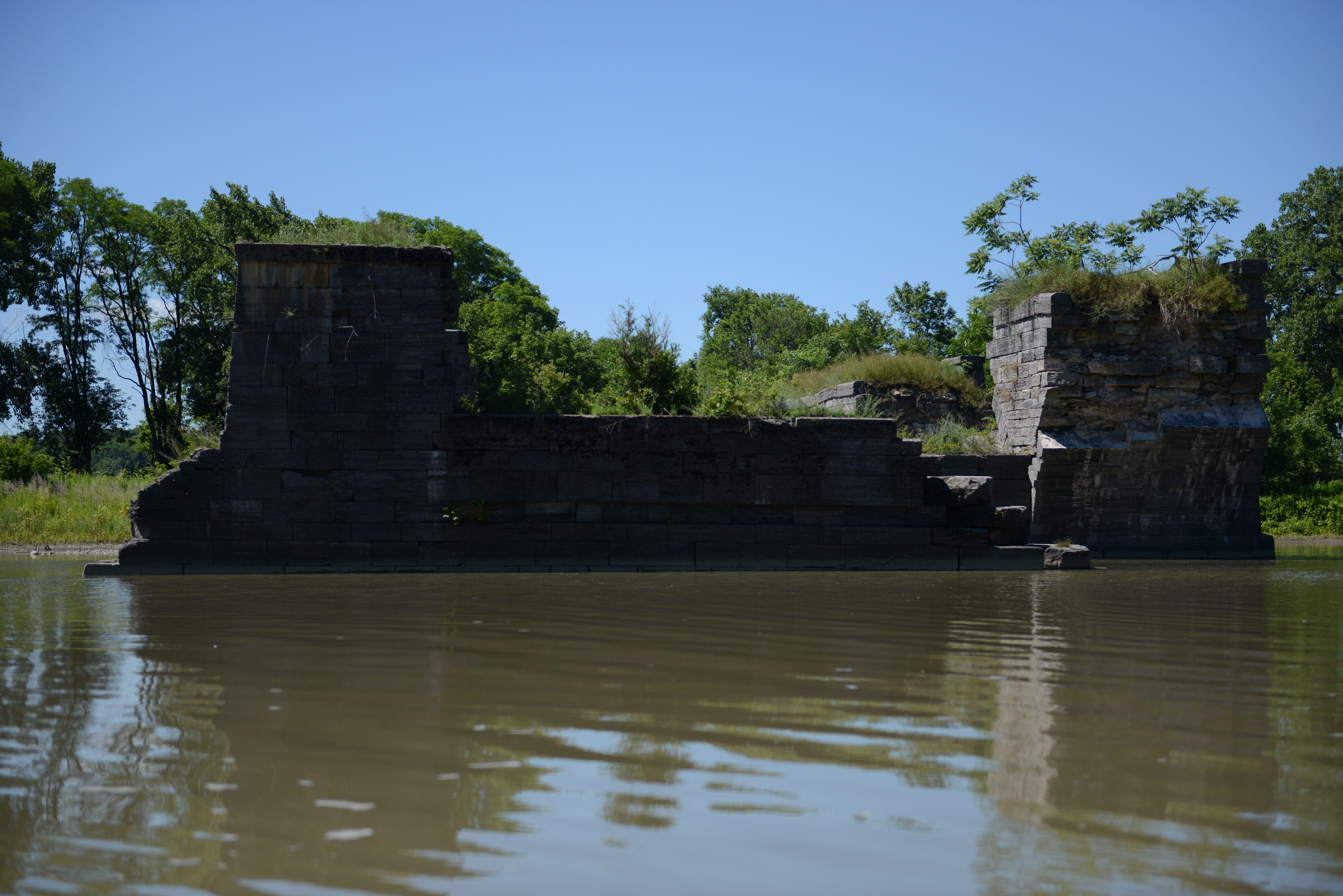 Just behind the upper walls of what was an original canal lock, is a portion of the 1825 Erie Canal. You can see that at four-feet deep, it was not much more than a ditch. This little ditch changed forever the economy and the history of of our country.