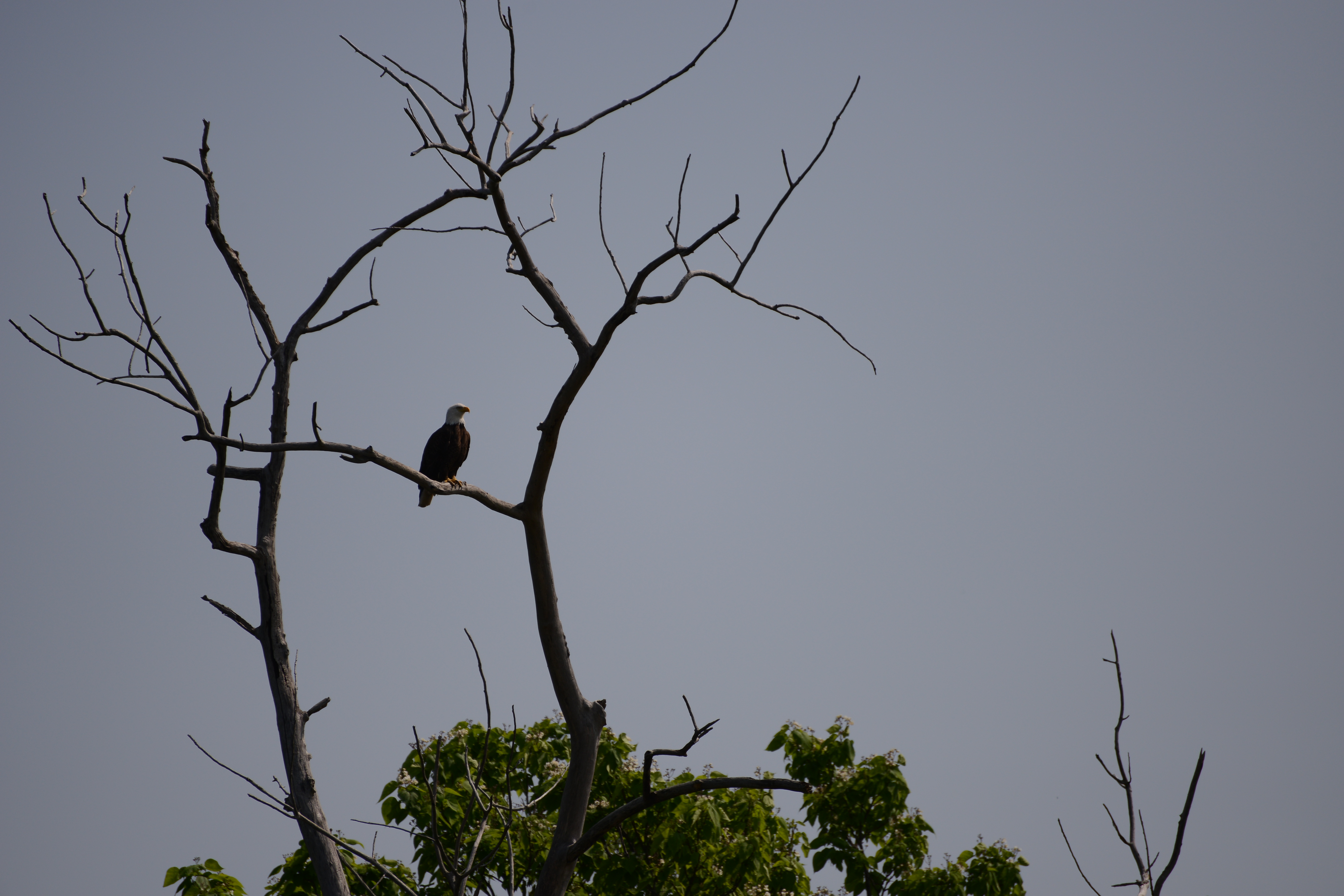 This Bald Eagle held his ground as an Osprey complained about the trespasser in its territory.