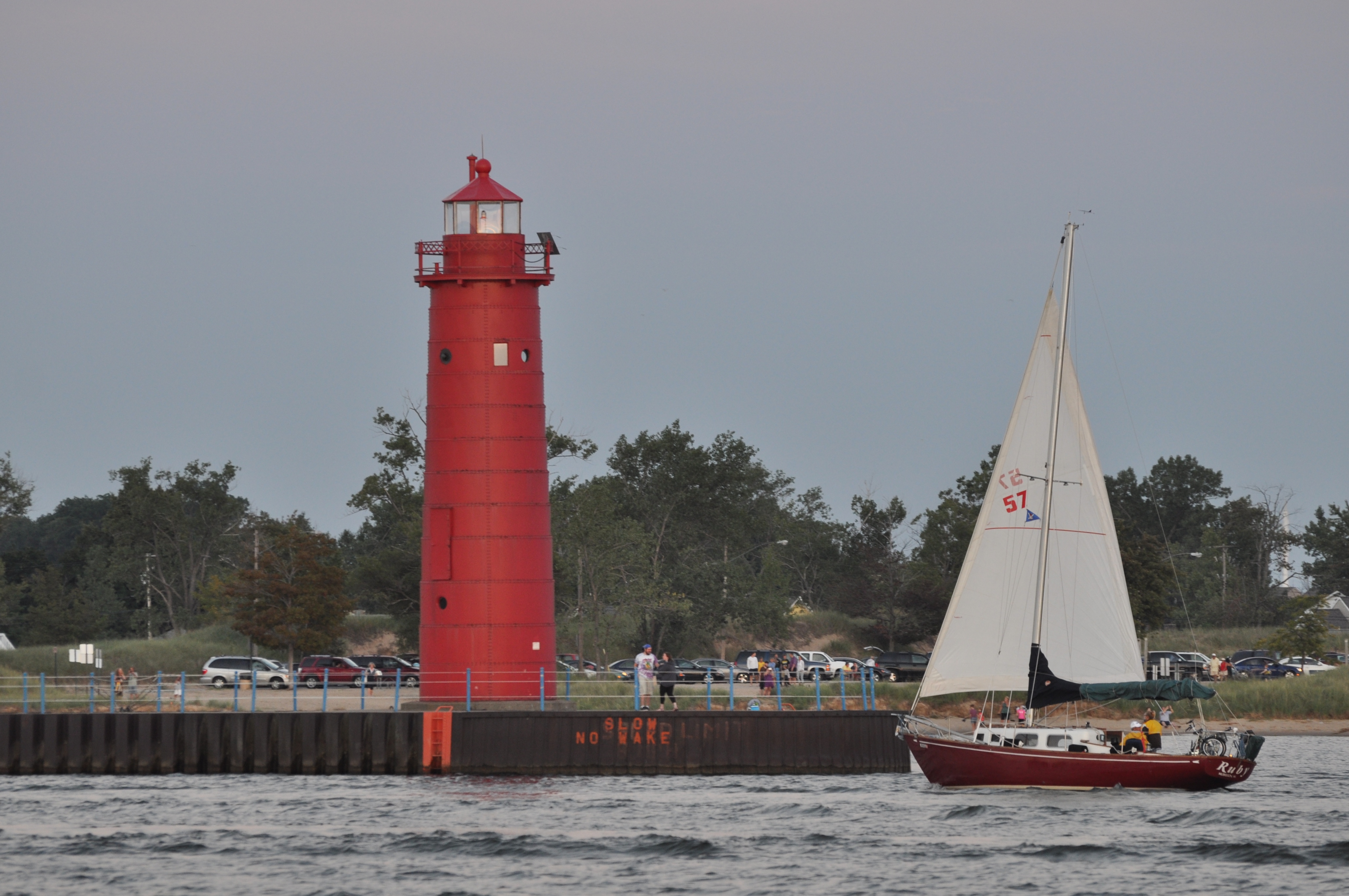 The skies again cleared and we piloted 45 miles to Muskegon, Michigan. Here we anchored in the stilling basin, an entry area behind outer breakwaters and before the inlet to the lake behind the dunes.